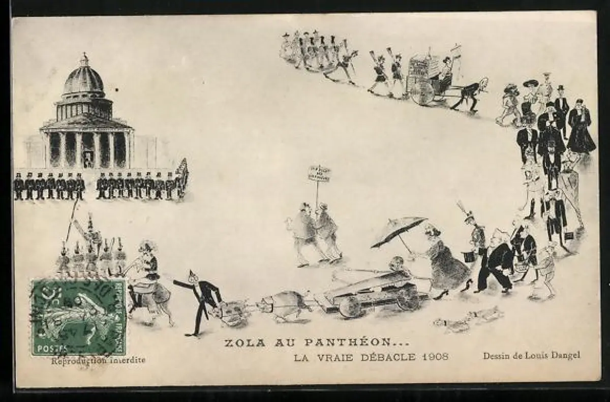 AK Zola au Panthéon, La Vraie Débacle 1908, Karikatur, Dreyfus-Affäre