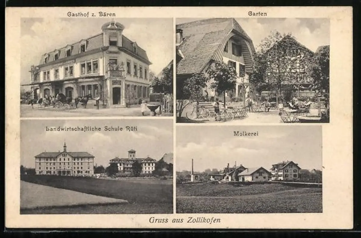 AK Zollikofen, Gasthof zum Bären, Landwirtschaftliche Schule Rüti, Molkerei und Garten