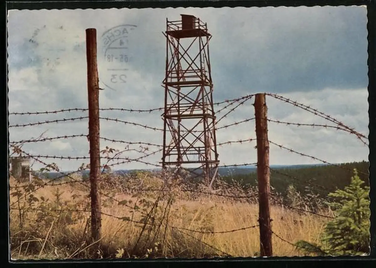 AK Zonengrenze im Harz mit Stacheldraht und Wachturm