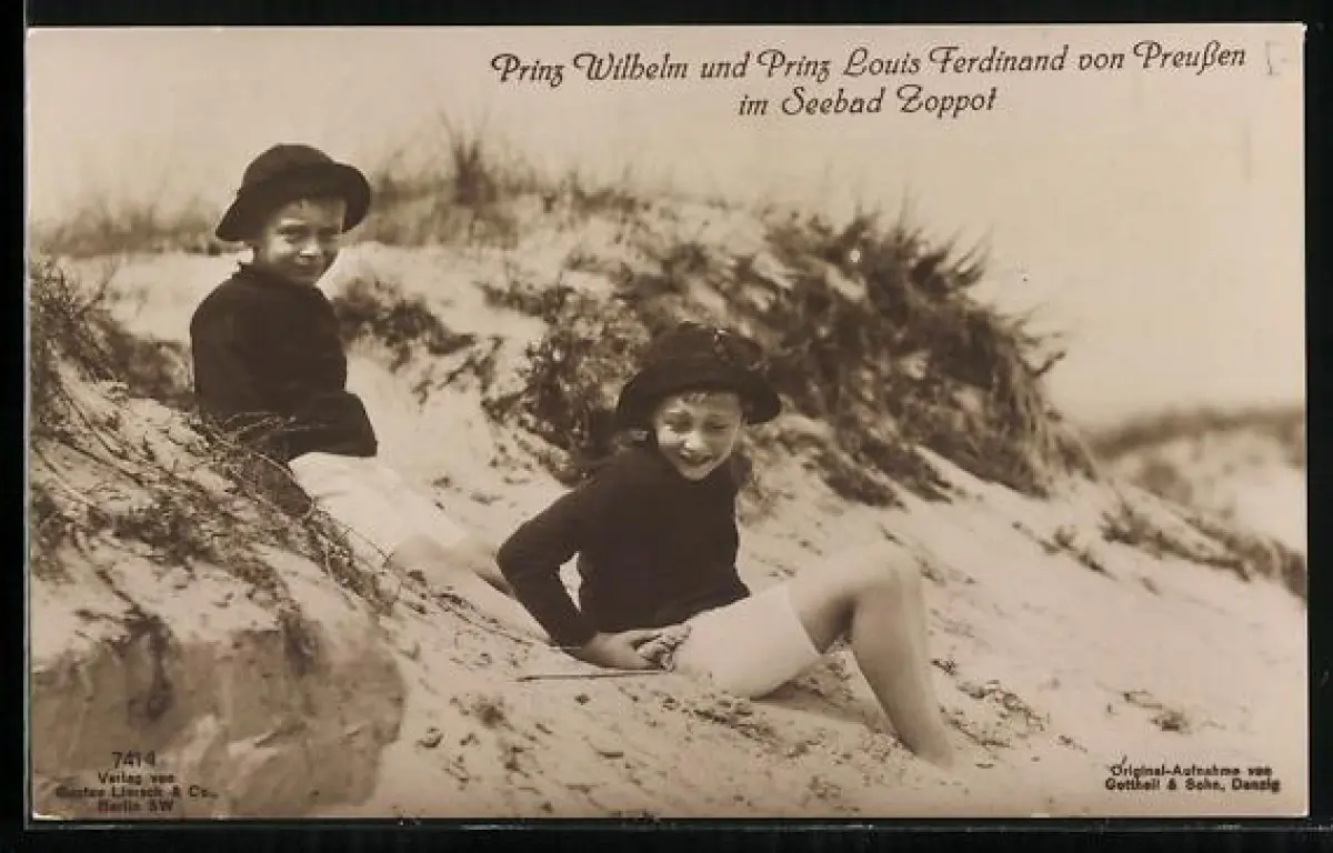 AK Zoppot / Sopot, Prinz Louis Ferdinand und Prinz Wilhelm am Strand