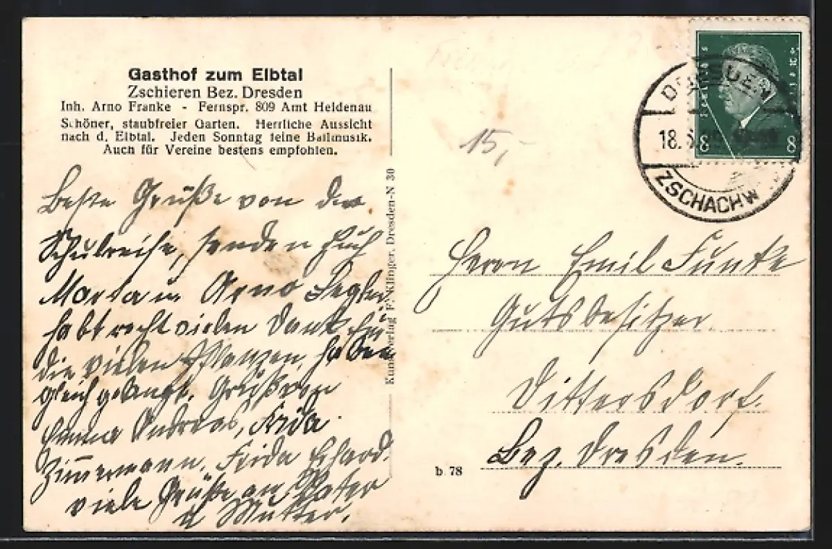 AK Zschieren /Dresden, Gasthof zum Elbtal, Inh. Arno Franke