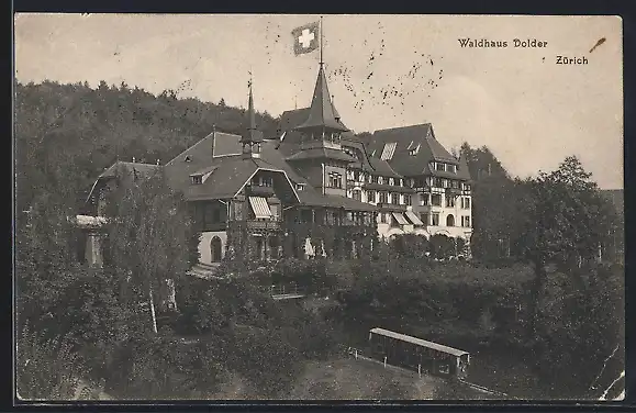 AK Zürich, Ankunft der Bergbahn am Waldhaus Dolder