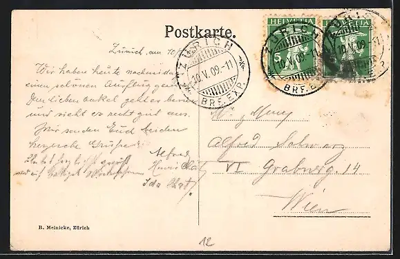 alte Ansichtskarte, gelaufen 1909, kl. Randschaden oben li., Eckknick unten re., Stempelspur, guter Zustand