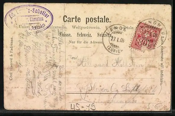 alte Ansichtskarte, gelaufen 1908, Eckknick re. oben, Oberflächenschaden vorn, guter Zustand