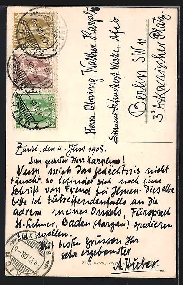 alte Ansichtskarte, gelaufen 1908, guter Zustand