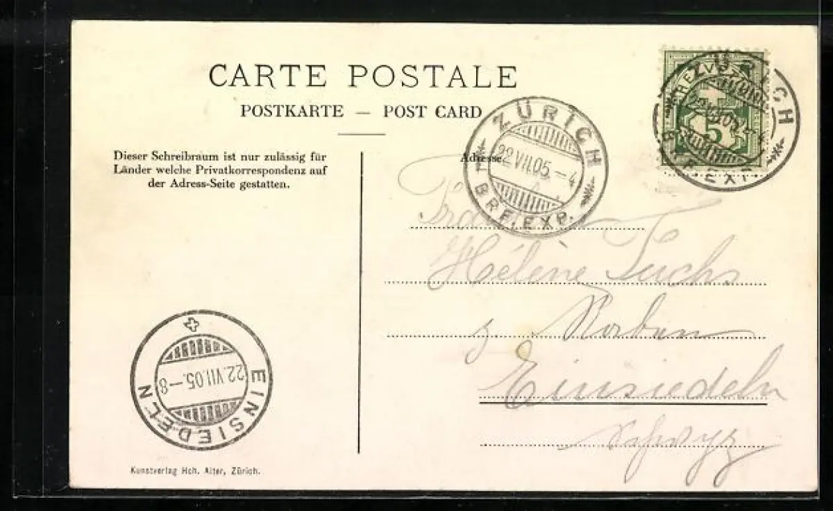 gelaufen 1905, Eckknicke re. unten, guter Zustand