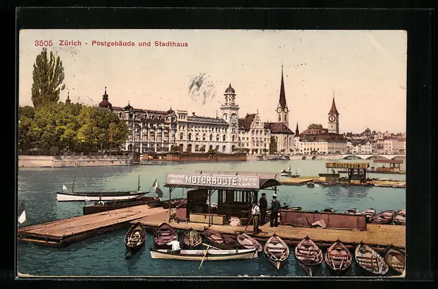 AK Zürich, Postgebäude und Stadthaus
