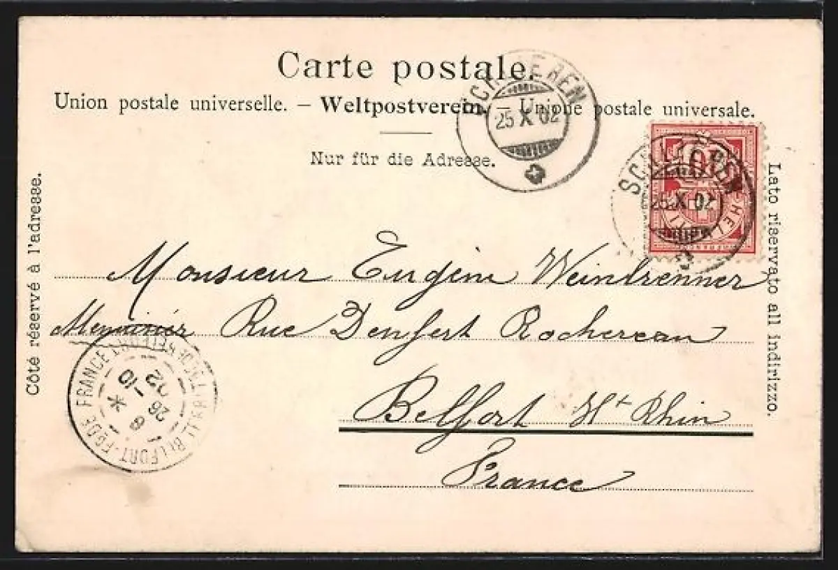 alte Ansichtskarte, gelaufen 1902, Eckknick re. unten, guter Zustand
