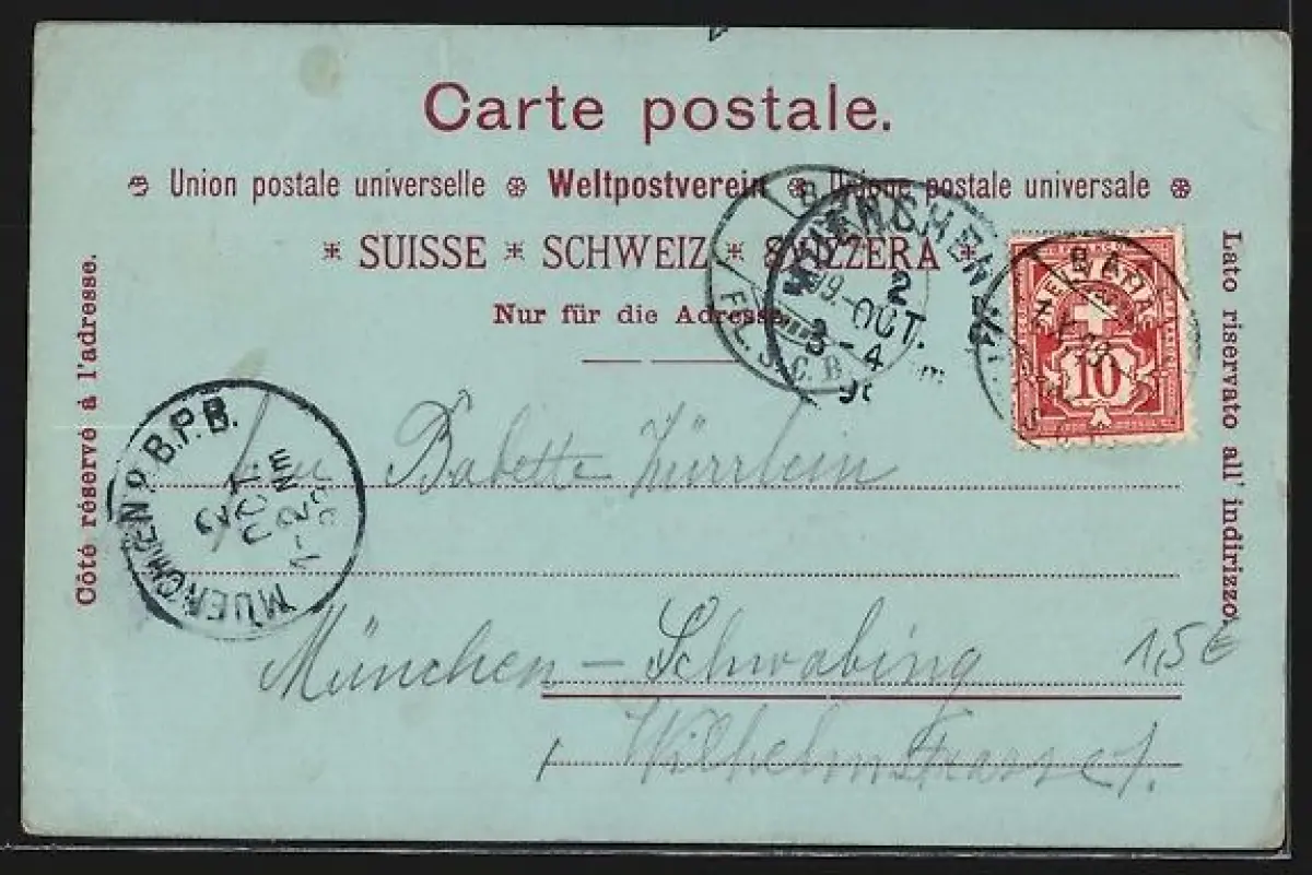 alte Ansichtskarte, gelaufen 1899, Einriss obere Kante, Eckknick rechts oben, sonst guter Zustand