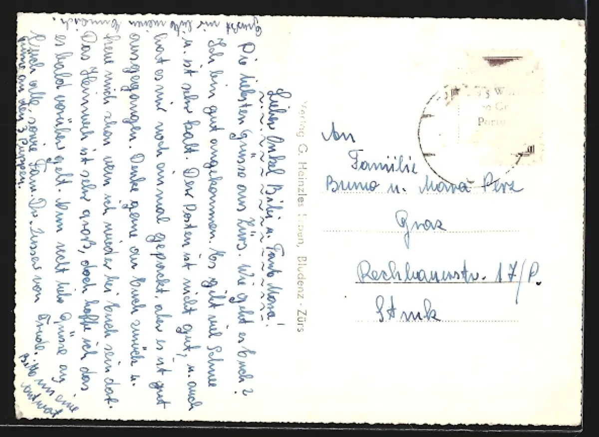 alte Ansichtskarte, gelaufen, Briefmarke entfernt, guter Zustand