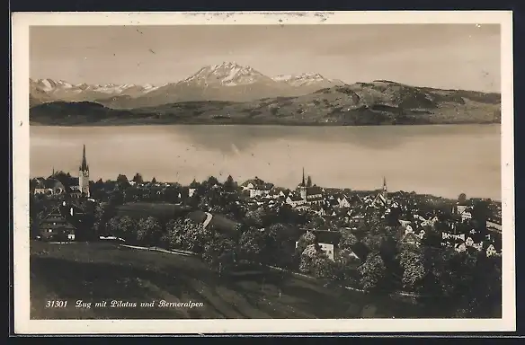 AK Zug, Ortsansicht mt Pilatus und Berneralpen