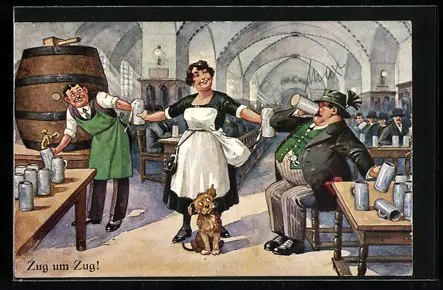 AK Zug um Zug!, Durstiger Münchner im Gasthaus