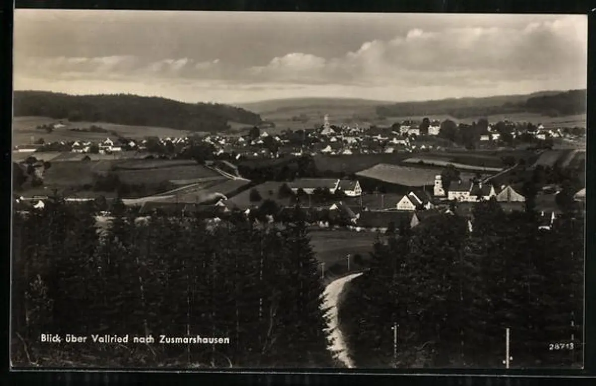 AK Zusmarshausen, Blick über Vallried nach dem Ort