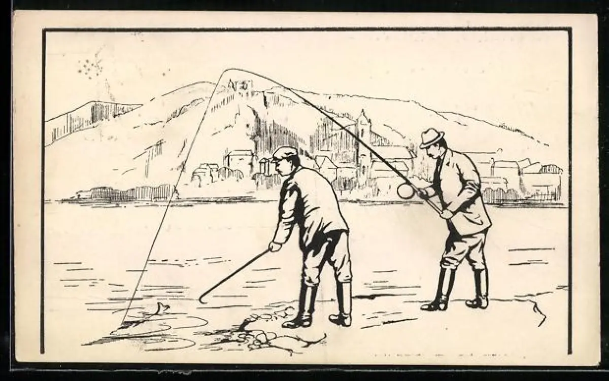 AK Zwei Angler am Ufer stehend