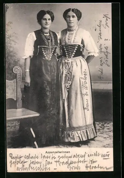 AK Zwei Appenzellerinnen in Trachtenkleidung