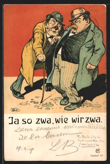 AK Zwei Betrunkene auf der Strasse, Trinkerhumor