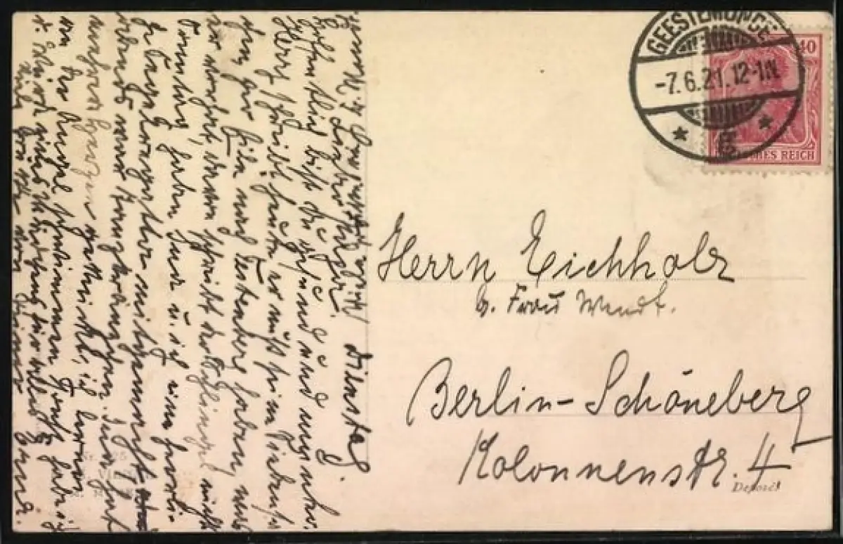 alte Ansichtskarte, gelaufen 1921, Eckknick li. oben, guter Zustand