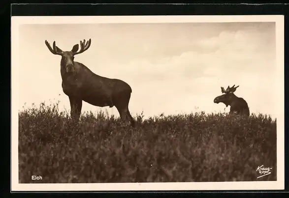 AK Zwei Elche in der Abenddämmerung