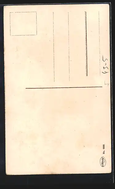 Personenbezogene Daten auf der Rückseite der Karte wurden durch blauen Textmarker unkenntlich gemacht. Die blauen Stellen sind auf die Vorderseite durchgeweicht und wirken sich negativ auf das Postkartenfoto aus