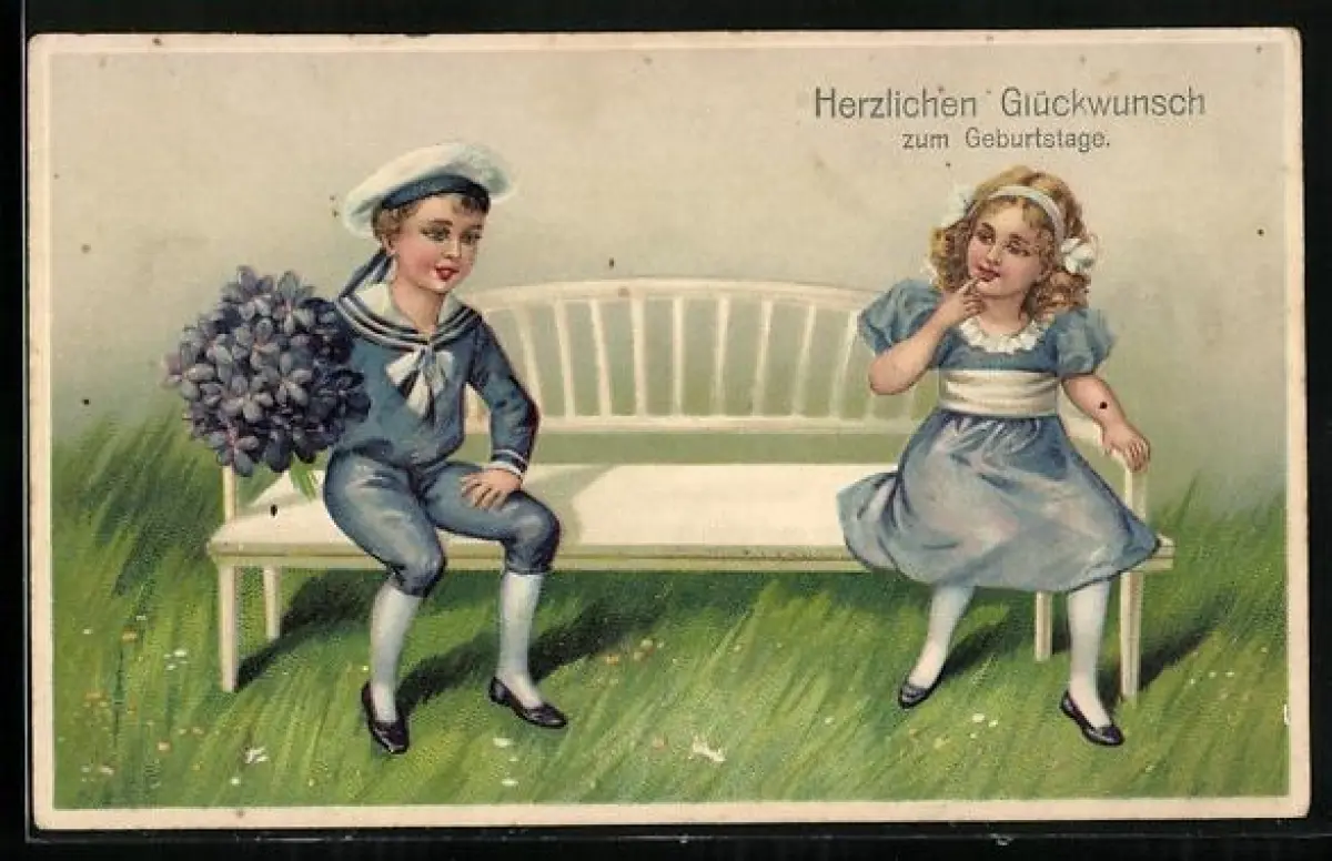 AK Zwei Kinder sitzen auf einer Bank, Junge trägt Matrosenkleidung