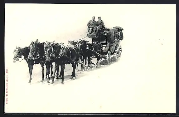 AK Zwei Männer auf einer Postkutsche mit fünf Pferden