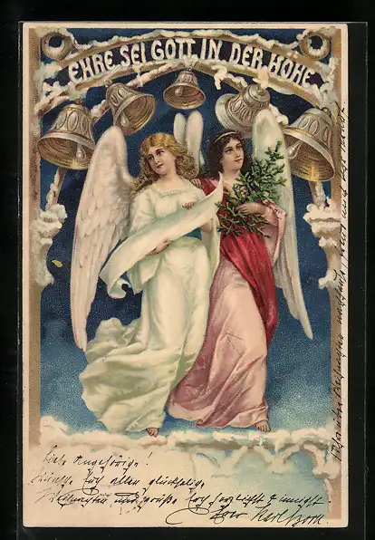 AK Zwei Neujahrsengel unter dem Spruch Ehre sei Gott in der Höhe