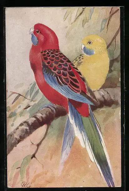 AK Zwei Plattschwanzsittiche auf einem Ast