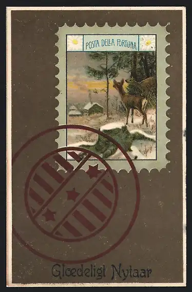 AK Zwei Rehe in einer Schneelandschaft, Glaedeligt Nytaar