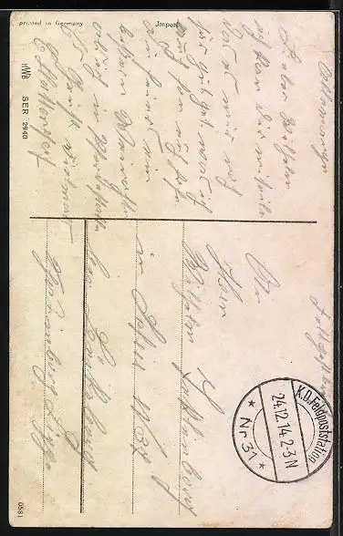 gelaufen 1914, Eckknick unten li. u. oben re., guter Zustand