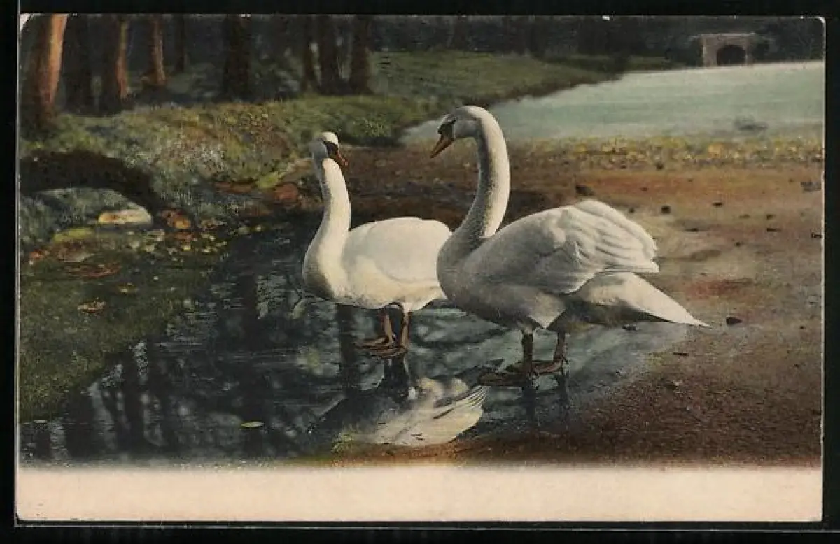 AK Zwei Schwäne an einem Gewässer
