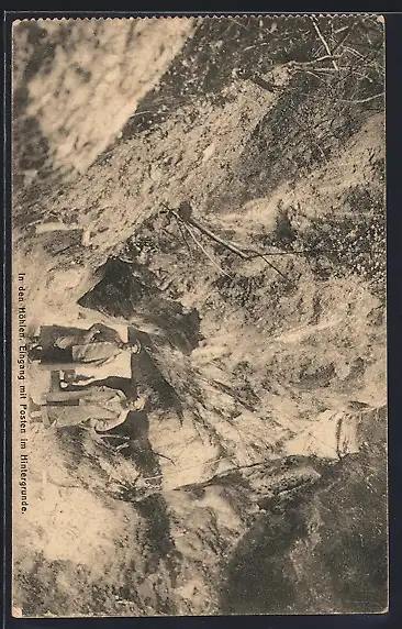 AK Zwei Soldaten in den Höhlen, Eingang mit Posten im Hintergrunde