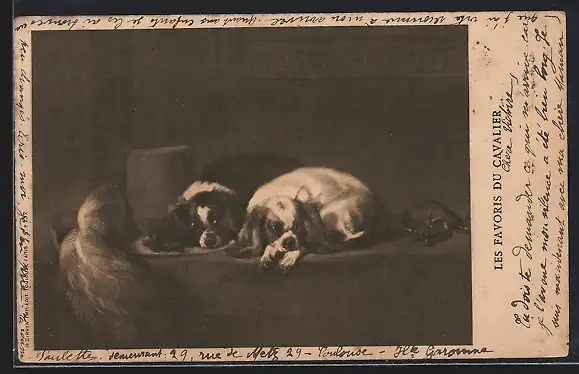 AK Zwei Spaniels liegen auf einem Podest