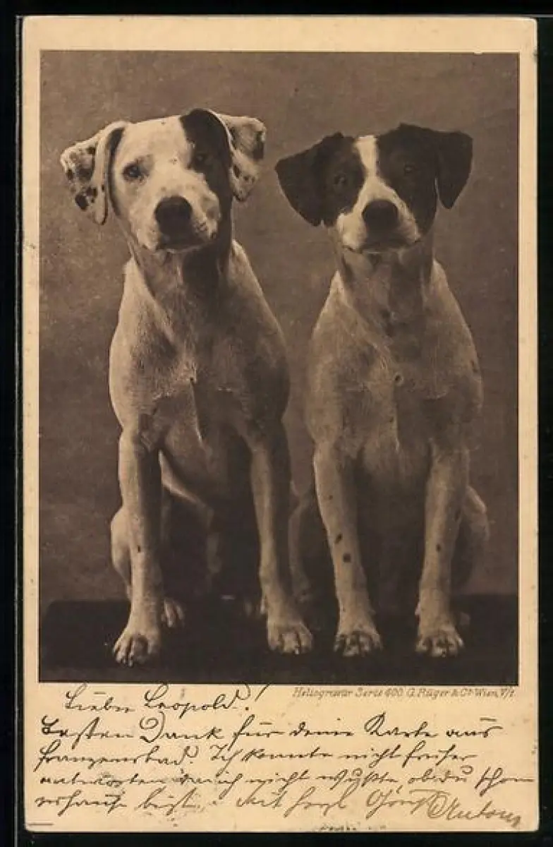 AK Zwei Terrier mit gespitzten Ohren neigen den Kopf zur Seite