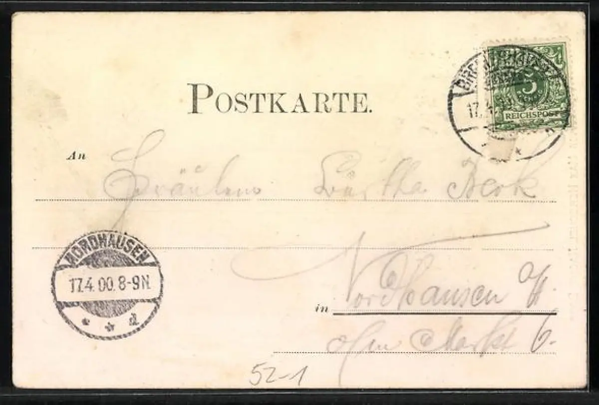 alte Ansichtskarte, gelaufen 1900, guter Zustand