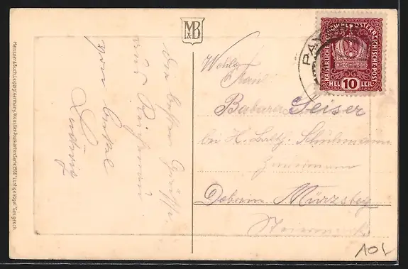 Personenbezogene Daten auf der Rückseite der Karte wurden durch blauen Textmarker unkenntlich gemacht. Die blauen Stellen sind auf die Vorderseite durchgeweicht und wirken sich negativ auf das Postkartenfoto aus