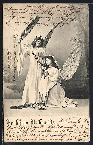 AK Zwei Weihnachtsengel mit Palmenzweigen