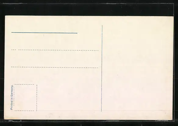 Personenbezogene Daten auf der Rückseite der Karte wurden durch blauen Textmarker unkenntlich gemacht. Die blauen Stellen sind auf die Vorderseite durchgeweicht und wirken sich negativ auf das Postkartenfoto aus