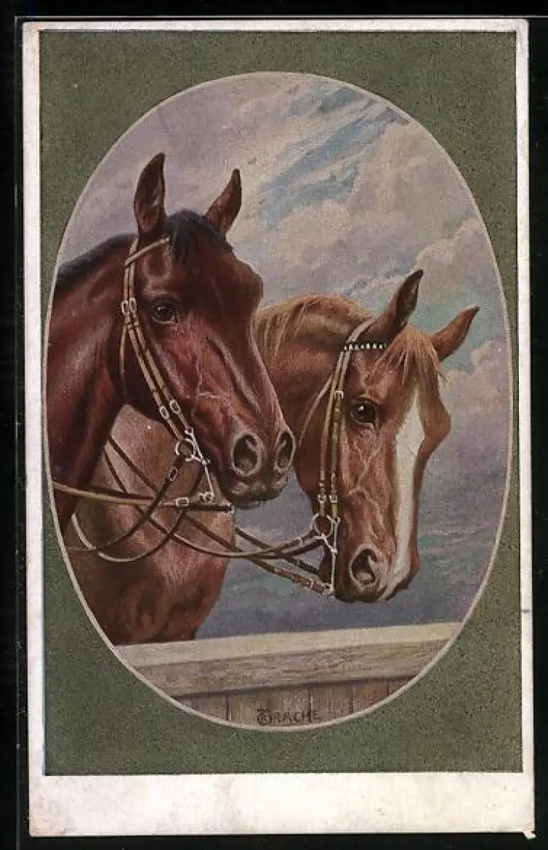 AK Zwei englische Halbblutpferde mit Zaumzeug
