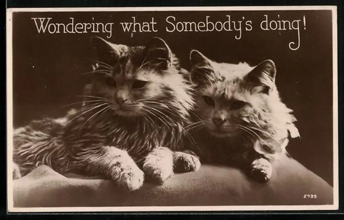 AK Zwei entspannte Katzen auf einer Liegestatt
