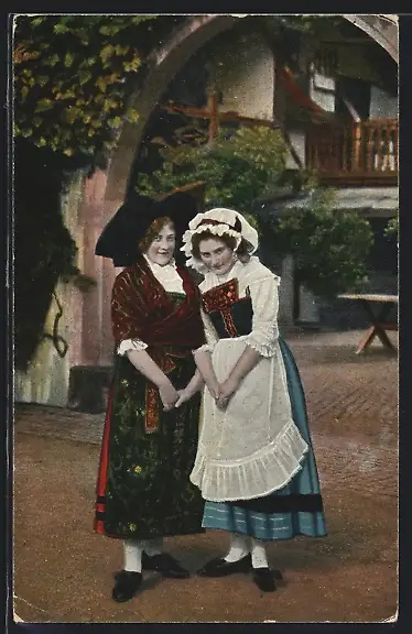 AK Zwei hübsche Damen aus dem Elsass und Lothringen in elsass-lothringischer Tracht
