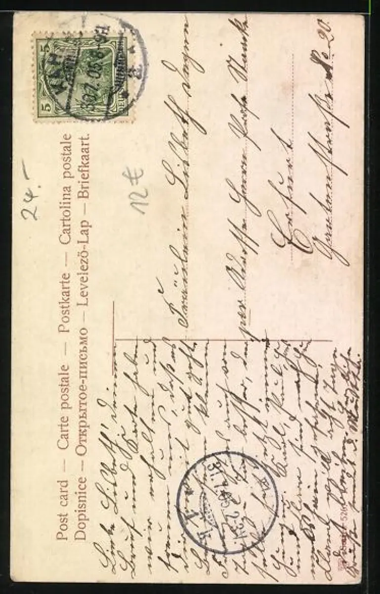 alte Ansichtskarte, gelaufen 1905, Eckknicke re. oben, guter Zustand