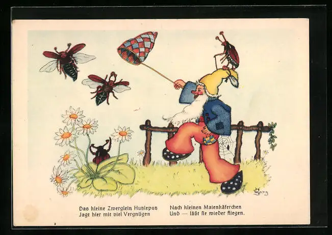 AK Zwerg Hutzleputz auf Maikäferjagd