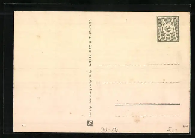Personenbezogene Daten auf der Rückseite der Karte wurden durch blauen Textmarker unkenntlich gemacht. Die blauen Stellen sind auf die Vorderseite durchgeweicht und wirken sich negativ auf das Postkartenfoto aus