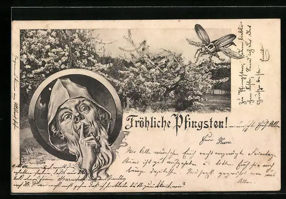 AK Zwerg ermahnt zur Ruhe, Maikäfer im Frühling