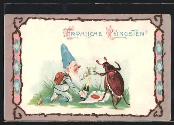 AK Zwerg und Maikäfer stossen mit Sekt zu Pfingsten an