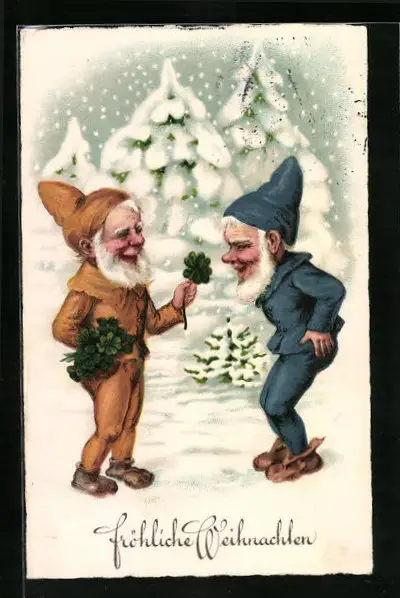 AK Zwerg verschenkt Kleeblatt