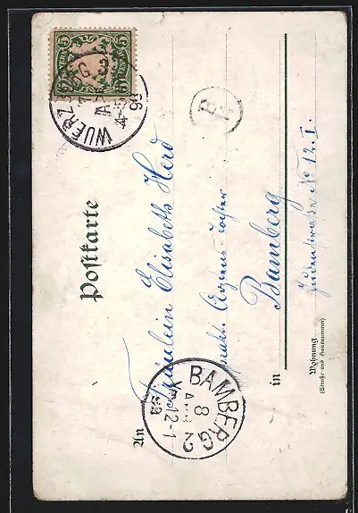 alte Ansichtskarte, gelaufen 1898, Eckknick re. oben, guter Zustand