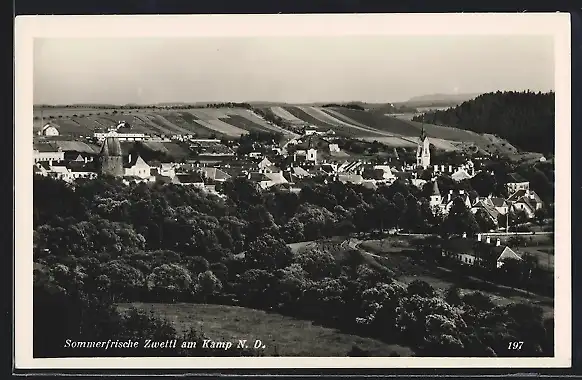 AK Zwettl am Kamp /N.-Do., Teilansicht mit Bäumen