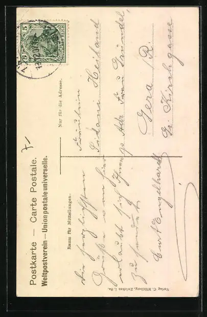 alte Ansichtskarte, gelaufen 1907, Eckknick oben rechts, guter Zustand