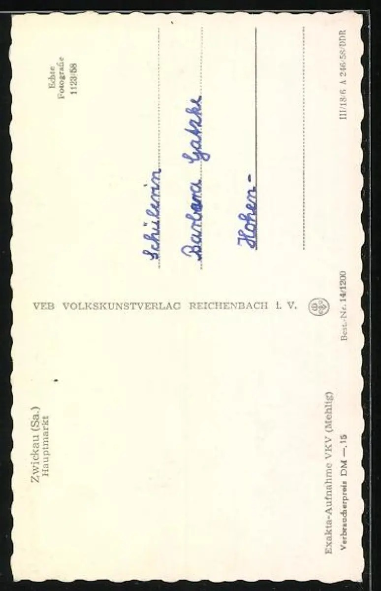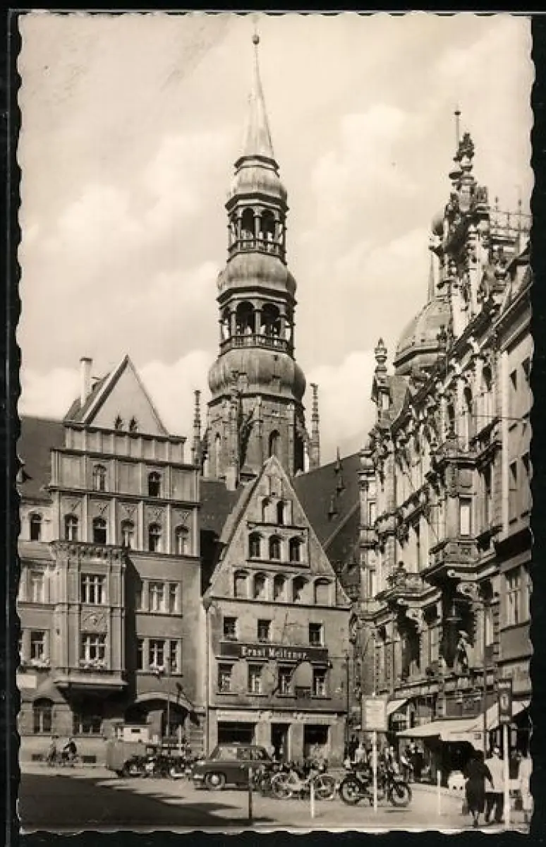 AK Zwickau /Sachsen, Hauptmarkt, Kirche, Geschäft Ernst Meitzner